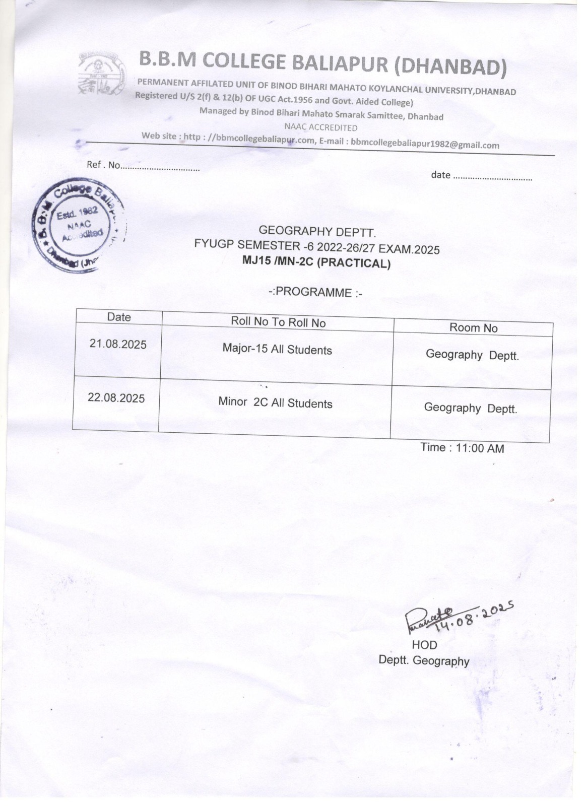 BBM College Baliapur : Geography Department Practical Exams on August 21 & 22