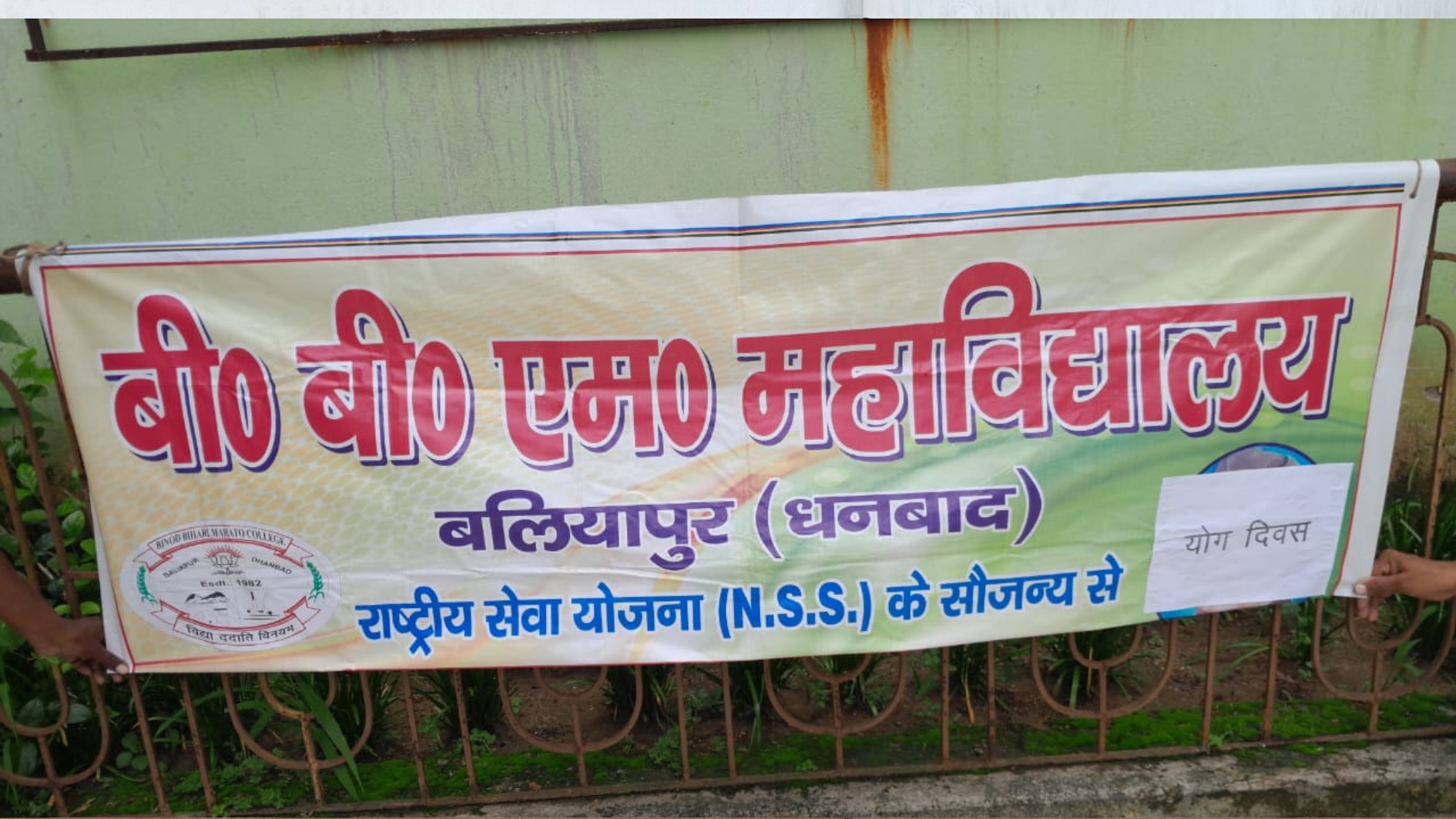 बी.बी. एम . महाविद्यालय , बलियापुर धनबाद में 11 वीं अन्तराष्ट्रीय योग दिवस के अवसर पर महाविद्यालय परिसर में योगा का आयोजन किया गया । जिसमें महाविद्यालय के प्राचार्य